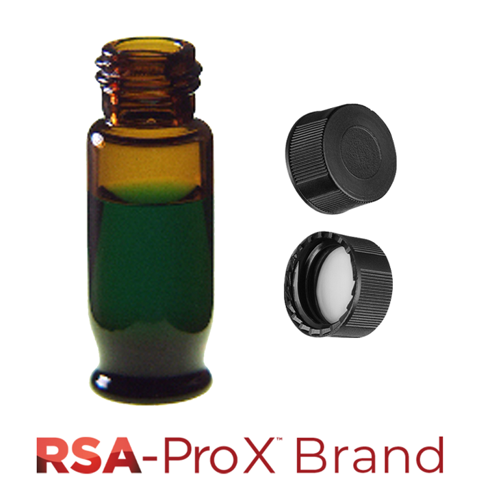 Vial & Cap Kit. 100 EA 1.8ml, Screw Top, Hydrophobic, Amber Autosampler Vials and matching Solid Black Caps with Clear Silicone Rubber / PTFE Liner. RSA-Pro X Brand. 1 PK.