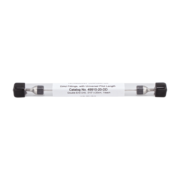 This Di-Ad™ is very convenient for laboratories that use multiple column brands and want to use 0.010" (254um) ID x 200mm (7.87") long tubing with perfect cut tips. Pressure rating for these connectors is 10,000 psi and are HPLC solvent resistant.