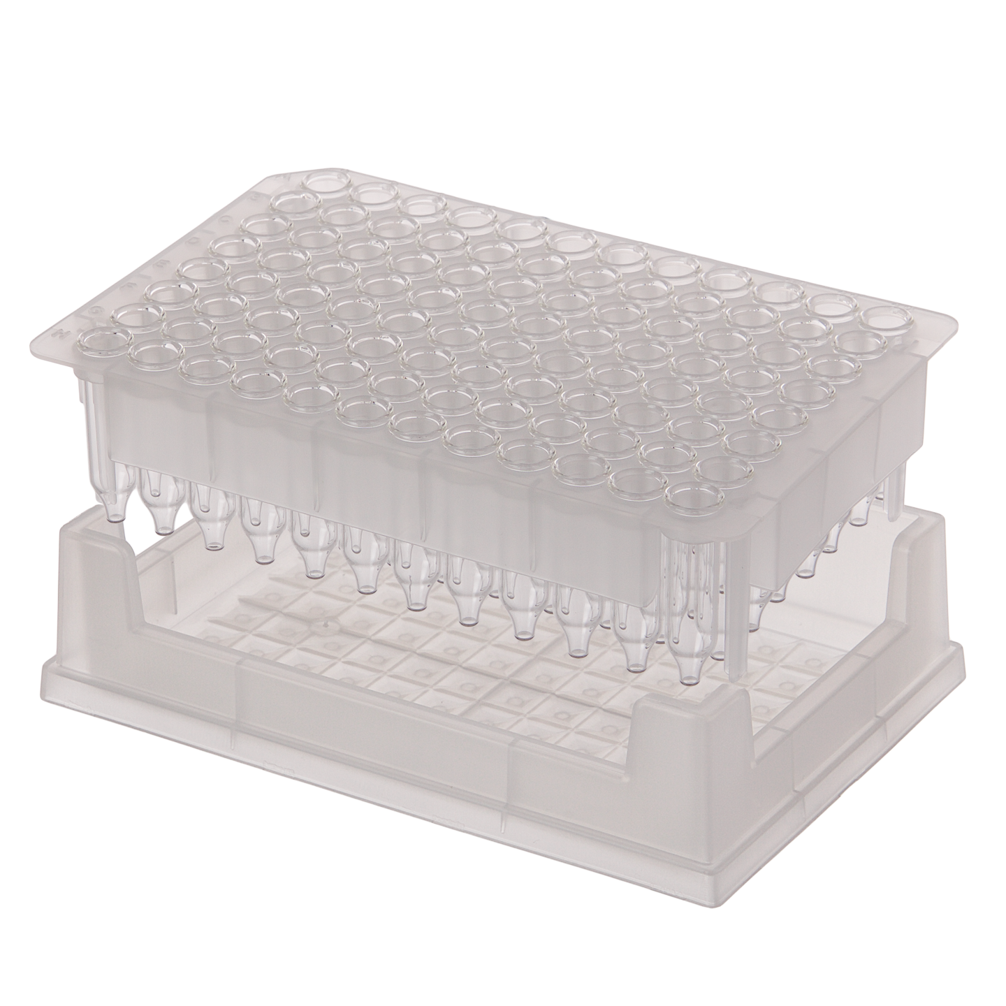 “Pre-Racked” for easy management, filling, visualization and thermal control, these Inserts can easily be filled using single or multi-channel pipettors. The supplied Rack is removable from the stackable BASE which is re-usable. Seal the racked Inserts with the supplied Pre-Slit, polymeric Mat (use with HPLC organic solvents) for storage or use in an autosampler that accepts standard, ANSI 96 Well Plates. Click HERE to view an MSM supplied with a chemical resistant mat.