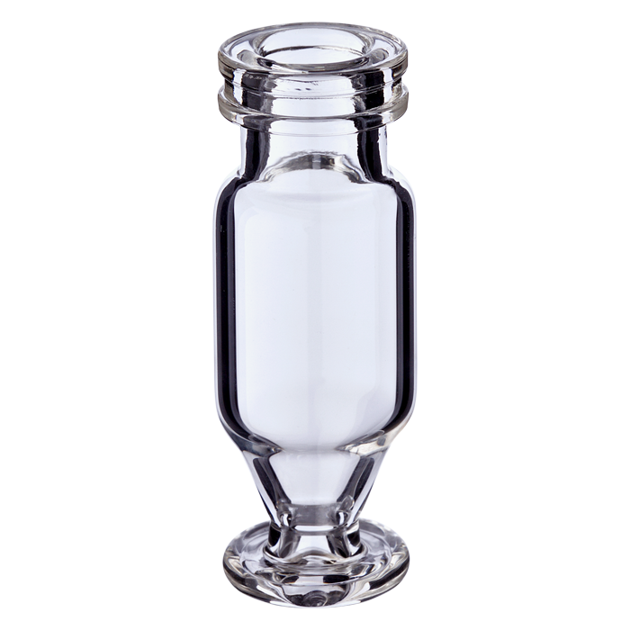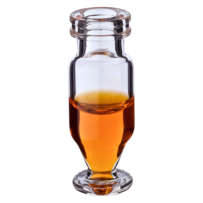 Compares to Champagne Style Vials. Features a 15ul residual volume for most autosamplers due to the center draining, inner U shape.
