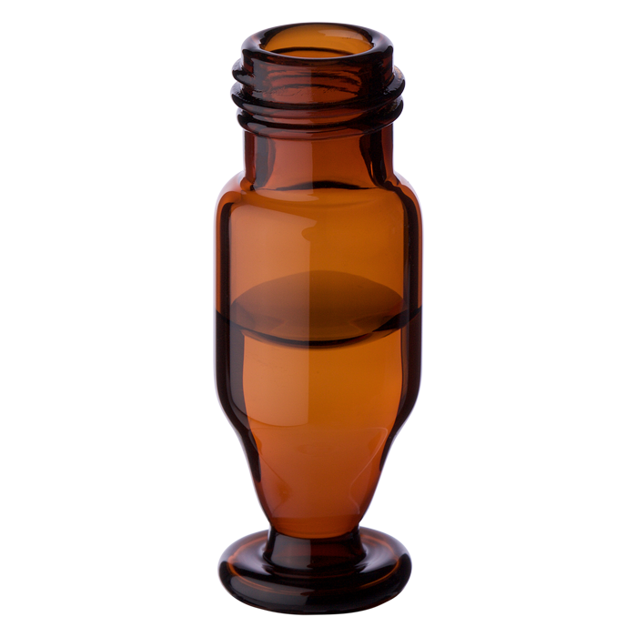 Compares to Champagne Style Vials. Features a 15ul residual volume for most autosamplers due to the center draining, inner U shape.