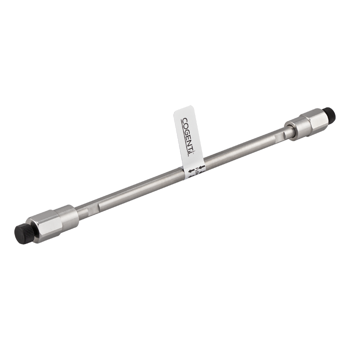 This Metal-Free Surface, Bio-Inert, Cogent Diamond Hydride™ HPLC Column is made with Cogent TYPE-C™ Silica, and this silica hydride based stationary phase provides excellent Selectivity, very fast Equilibration and robust Column Lifetimes. The Bio-Inert, Metal Free column coating provides a permanent protection from analyte interaction with the steel column or steel frits, which can be problematic for many compounds including proteins, peptides and small molecules. This coating provides protection of your samples and helps to produce more accurate and precise data.