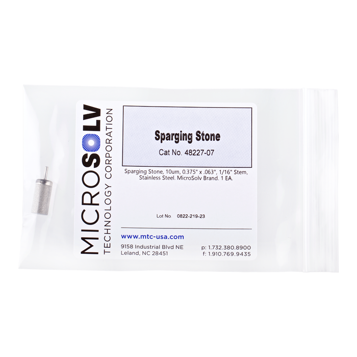 Drop these spargers directly into closed mobile phase reservoir bottles using a mobile phase delivery cap.