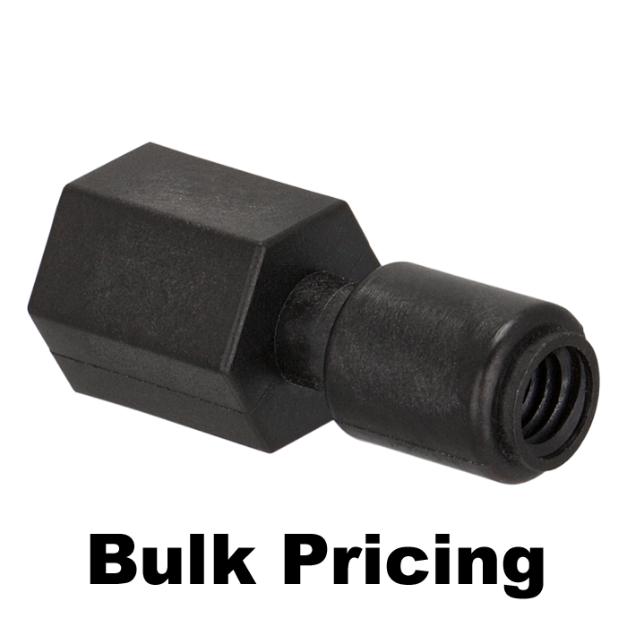 Union, Connector, low pressure, 1.0 mm / 0.040 inch through hole with 10-32 to 1/4-28 reducing screw threads. Carbon PEEK Endure. Use with 1/16 tubing. ARE-Applied Research brand. Bulk Price.