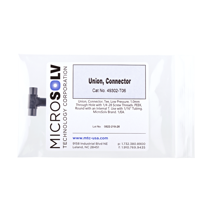 These "Union" Tee's are used to connect PEEK or stainless steel tubing with the same connectors on all ends in the low pressures zones of HPLC systems. An internal "T" flow pattern is often used to split flow into two directions or to combine two streams into one.