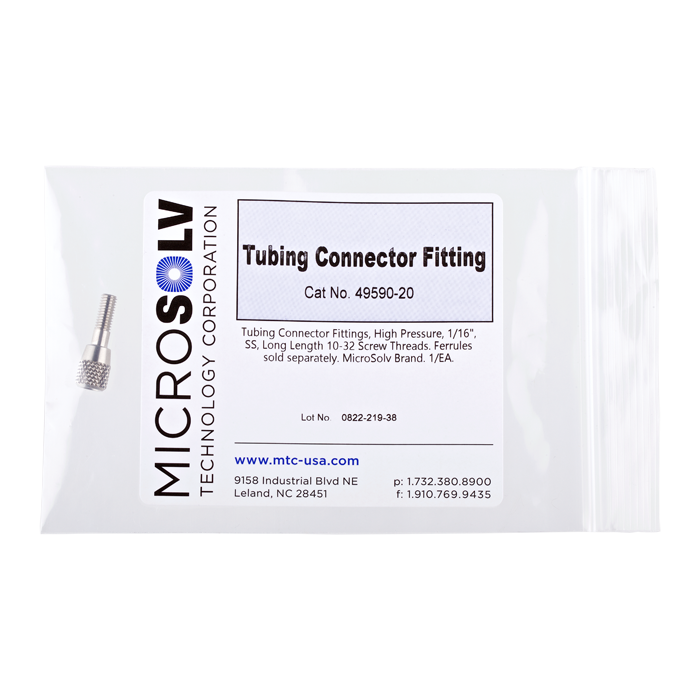 Tubing Connector Fitting, High Pressure, 1/16 inch SS, Finger Tight, 10-32 Threads. Ferrules sold separately. ARE-Applied Research brand. CLEARANCE. 1 EA.