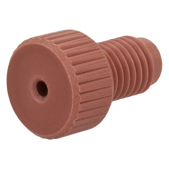 These tubing connector nuts are used to connect 1/16th inch (1.6 mm) OD polymeric tubing in the low pressures zones of HPLC systems and other low pressure, fluidic uses.
