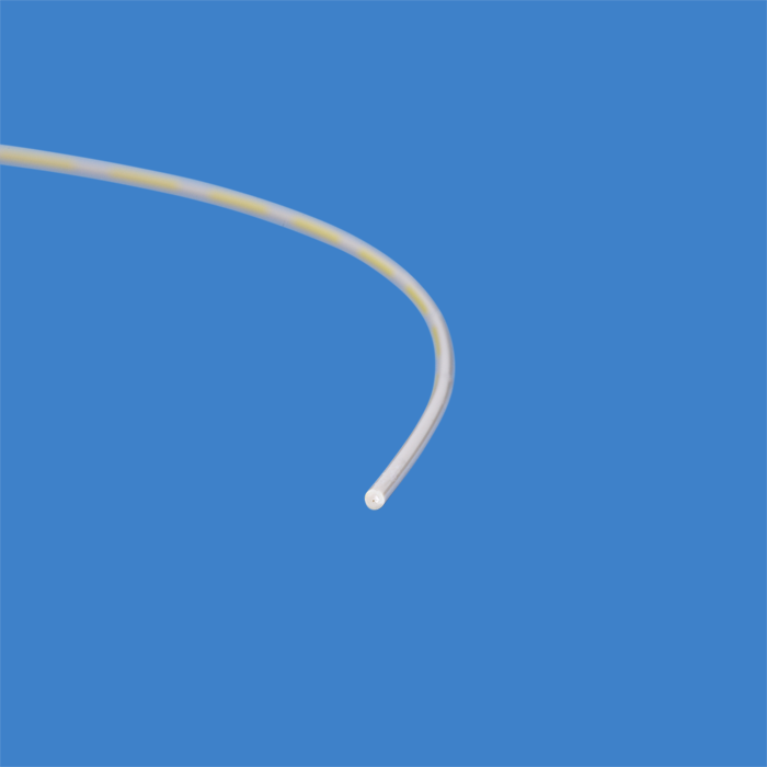 This Ultra-T™ grade (premium) tubing is extruded from virgin PEEK material without any manufacturing additives. The broken yellow stripes are added only to the outside of the tubing, leaving the interior all natural PEEK which eliminates leachables due to color.