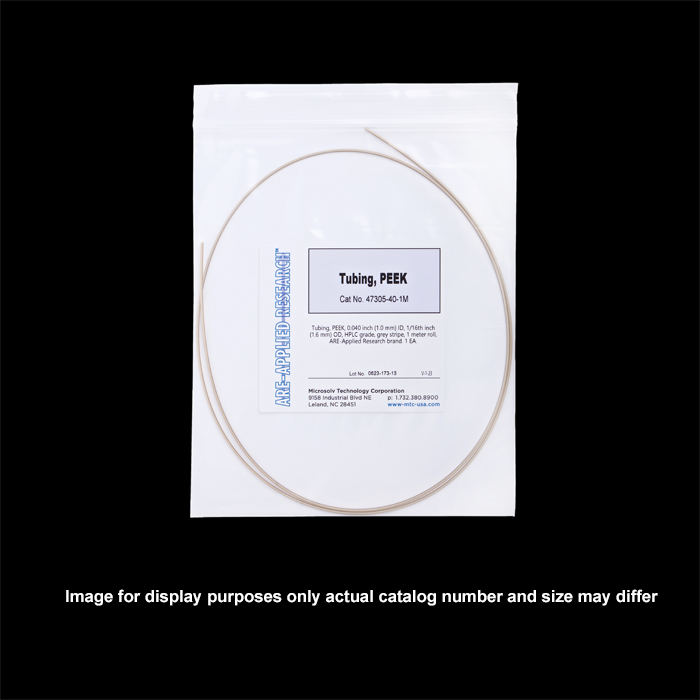 Tubing, PEEK, 0.040 inch (1.0 mm) ID, 1/16th inch (1.6 mm) OD, HPLC grade, grey stripe, 3 meter roll, ARE-Applied Research brand. 1 EA.