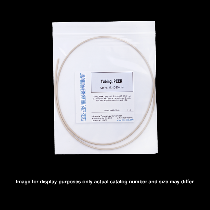 Tubing, PEEK, 0.080 inch (2.0 mm) ID, 1/8th inch (3.2 mm) OD, HPLC grade, natural color, 3 meter roll, ARE-Applied Research brand. 1 EA.