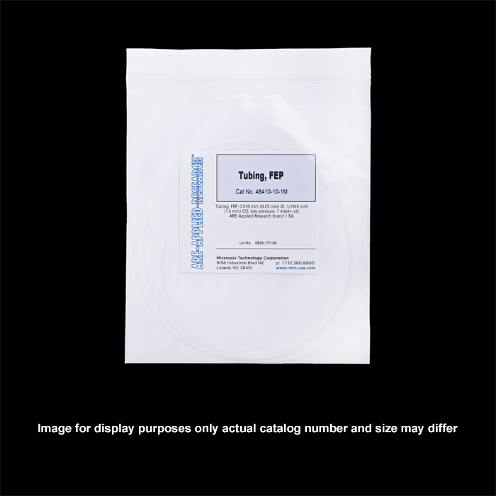 Tubing, FEP, 0.010 inch (0.25 mm) ID, 1/16th inch (1.6 mm) OD, low pressure, 10 meter roll, ARE-Applied Research brand 1 EA.