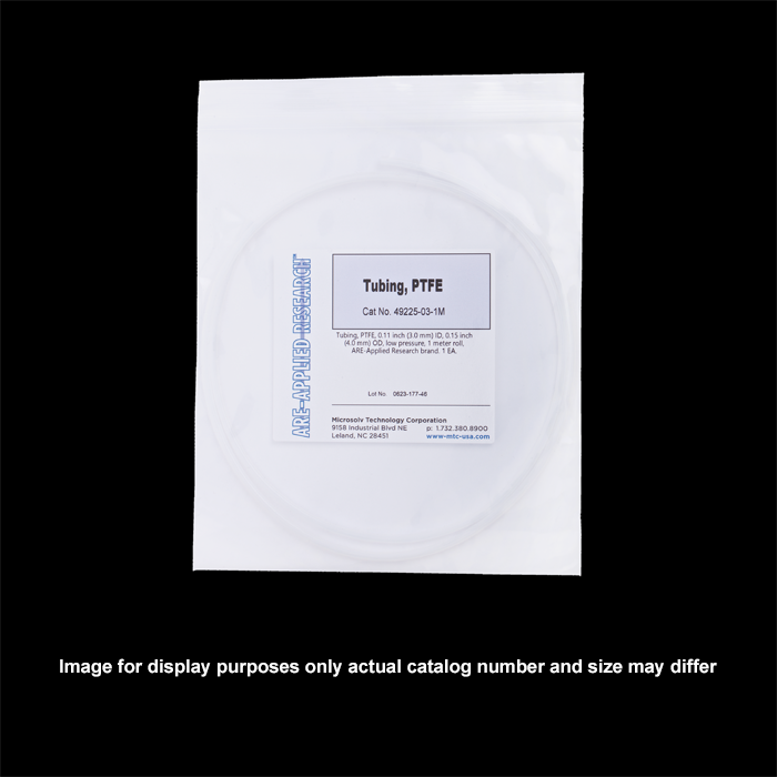Tubing, PTFE, 0.11 inch (3.0 mm) ID, 0.15 inch (4.0 mm) OD,low pressure, 3 meter roll, ARE-Applied Research brand. 1 EA.