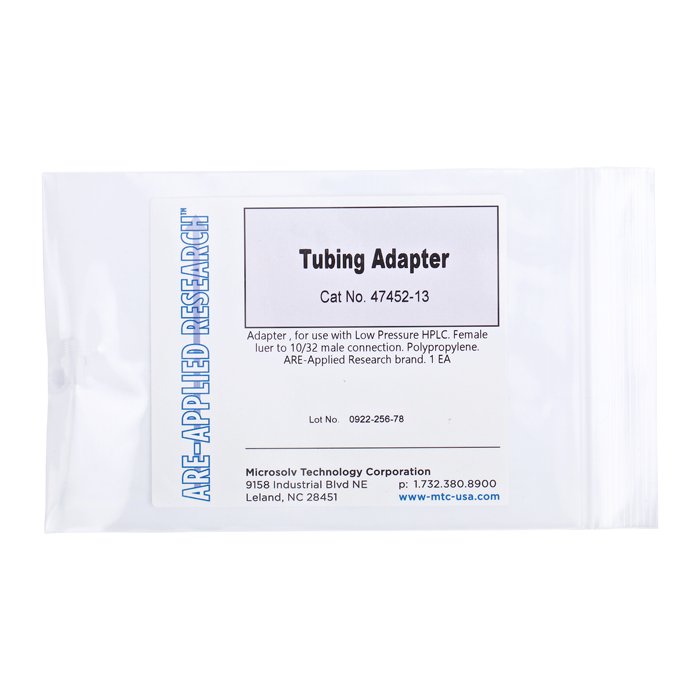 Adapter, for use with low pressure HPLC. Female luer to 10/32 male connection. Polypropylene. ARE-Applied Research brand. Bulk Price.