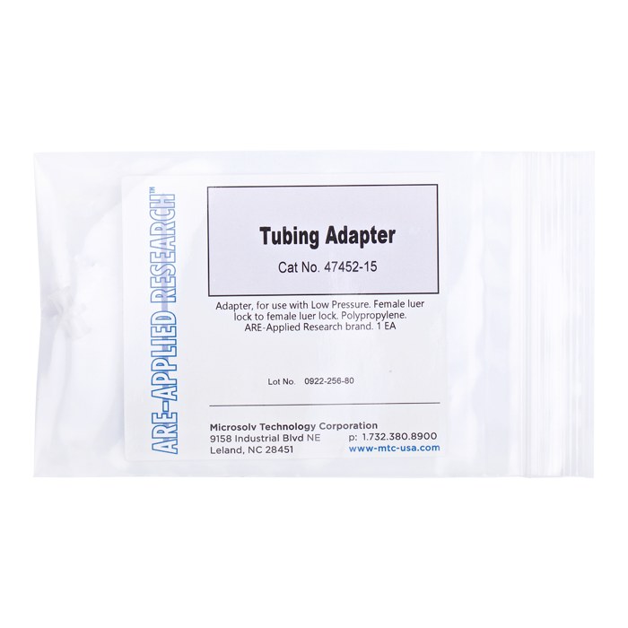 Adapter, for use with low pressure. Female luer lock to female luer lock. Polypropylene. ARE-Applied Research brand. 10/PK.