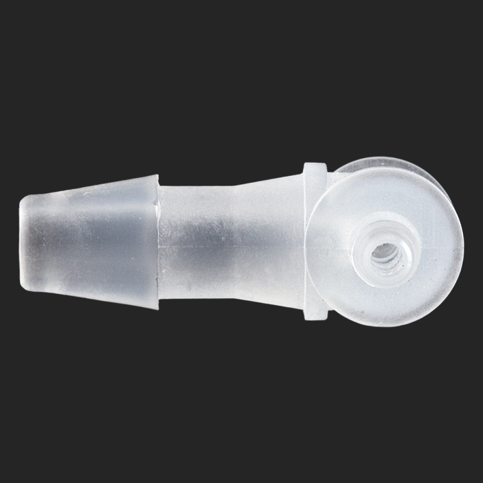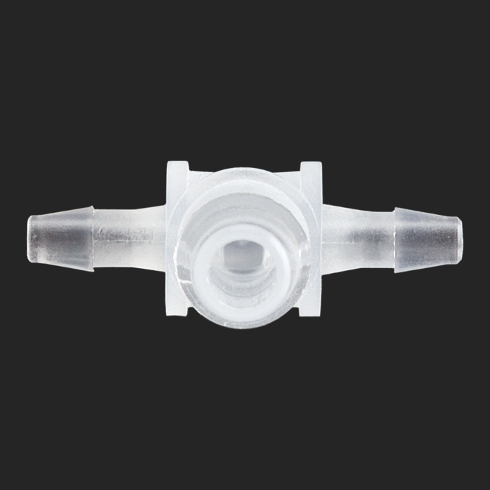 This polypropylene union / adapter allows you to connect, split or combine low pressure flow of liquid from 1/16th inch ID tubing to 1/8th inch ID tubing.