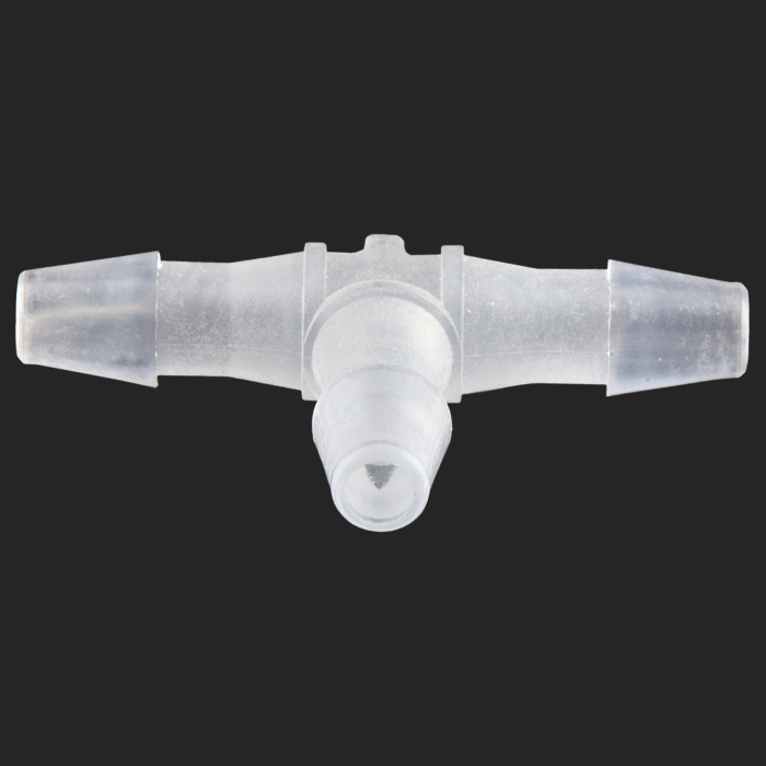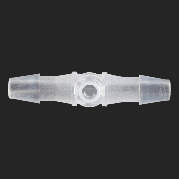 This polypropylene union / adapter allows you to connect, split or combine low pressure flow of liquid within 3/32-inch ID tubing.