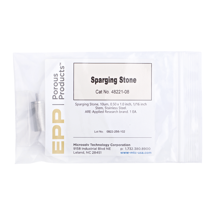 Sparging Stone, 10 um, 0.5 inch x 1 inch, 1/16 inch stem, Stainless Steel. EPP-Porous Products brand. 1 EA.