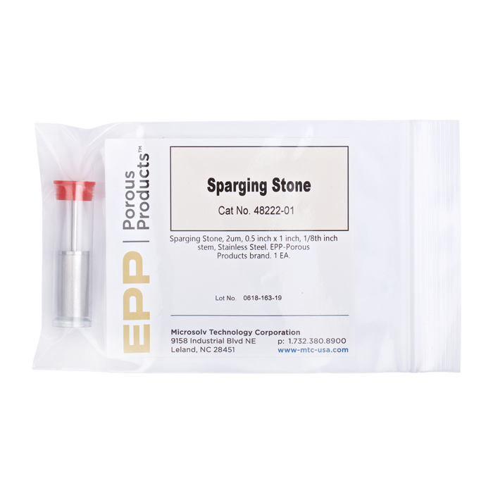 Sparging Stone, 2 um, 0.5 inch x 1 inch, 1/8 inch stem, Stainless Steel. EPP-Porous Products brand. 1 EA.