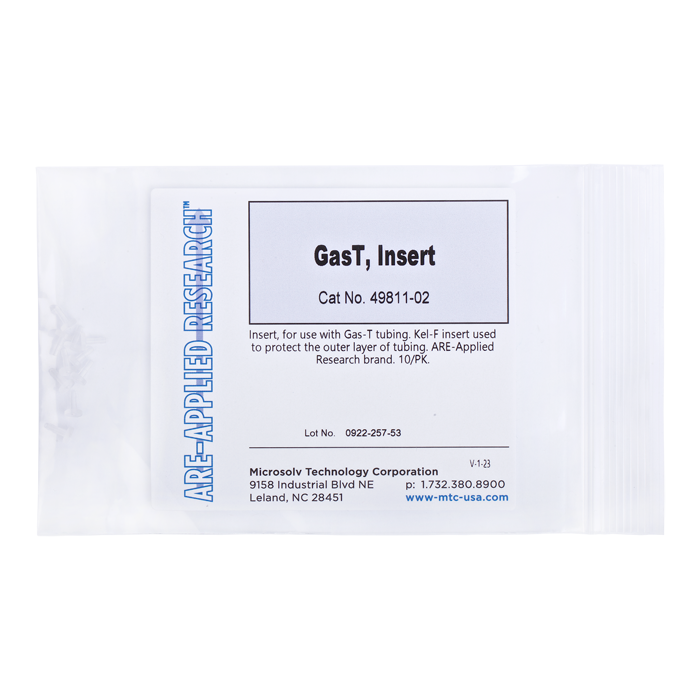 Insert, for use with Gas Tight tubing. Kel-F insert used to protect the outer layer of tubing. ARE-Applied Research brand. 10/PK.
