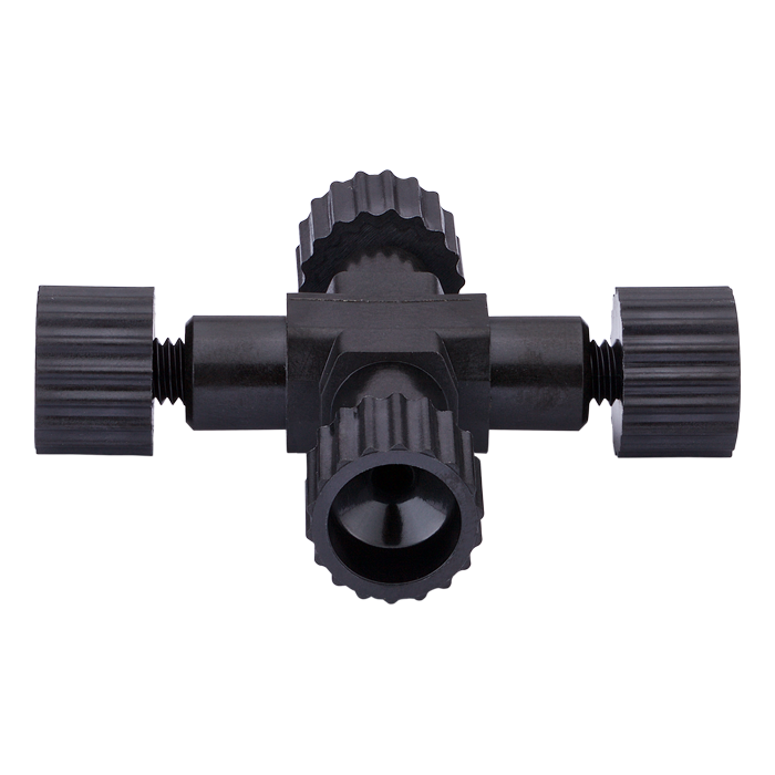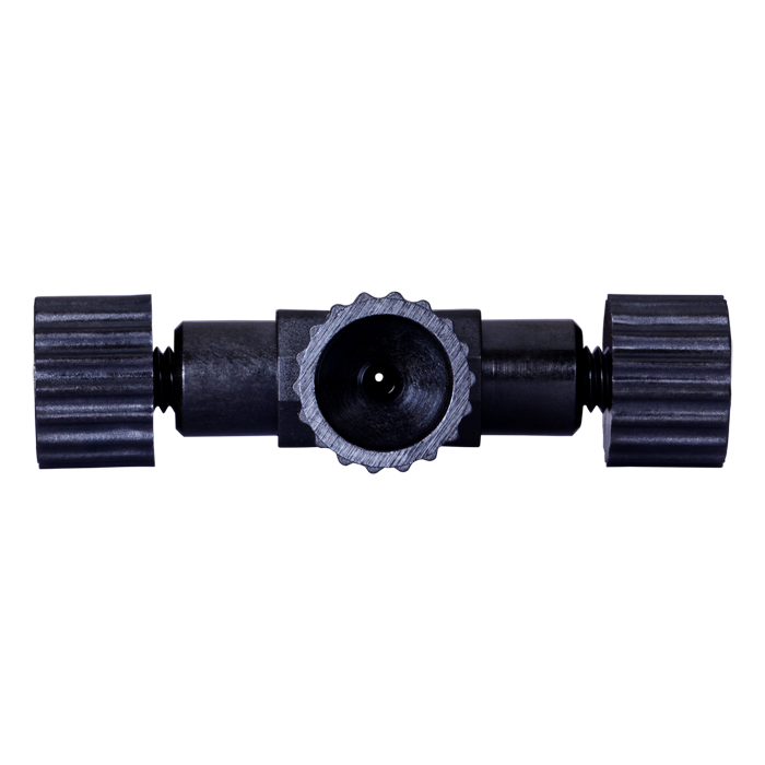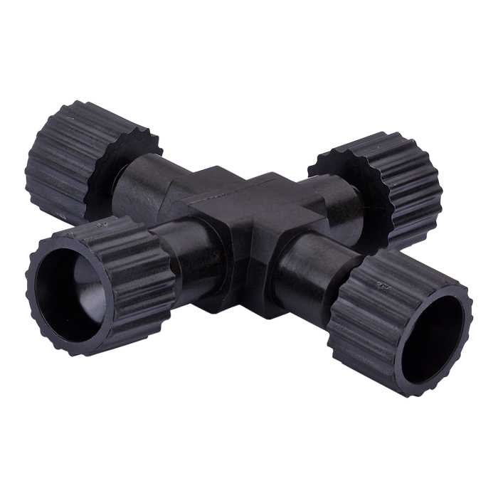Union, Connector Kits, Cross, high pressure, 0.50 mm / 0.020 through hole with 10-32 screw threads. Carbon PEEK Endure, with connector nuts. Use with 1/16 tubing. ARE-Applied Research brand. 10/PK.
