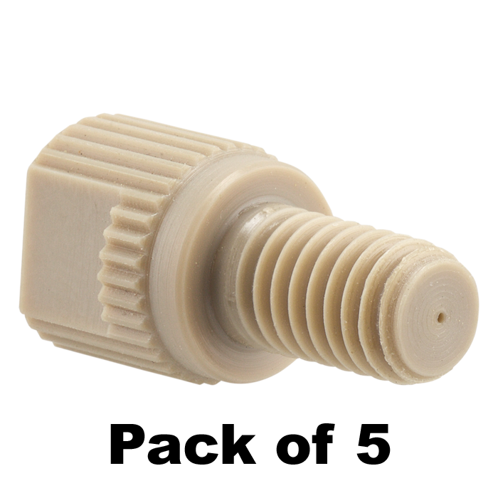 This all-PEEK adapter is great for low to medium pressures and has a 10-32 threaded female port on one side and a European style M6 male screw thread connector on the other side.