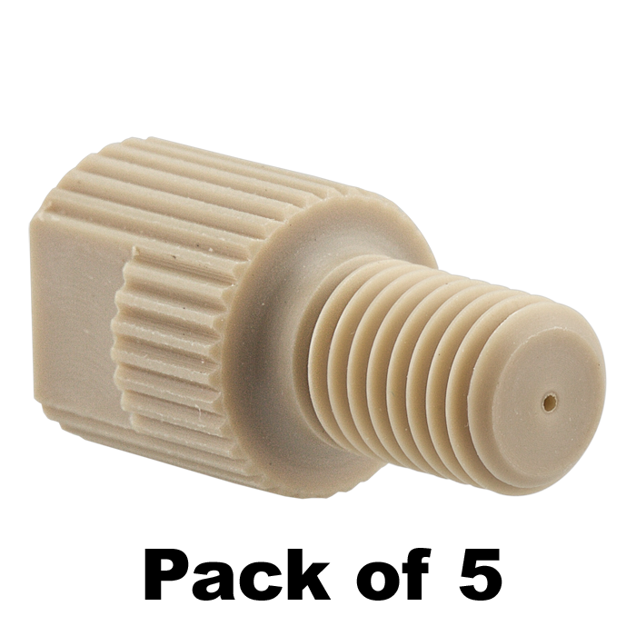 This finger tightened adapter makes changing from Waters® male nuts to 1/4-28, non-Waters standard connections very convenient especially when using Waters style fittings. This all-PEEK adapter has a Waters style female, screw threaded port on one side and a 1/4-28 screw threaded, male connector on the other side. Click HERE for the differences between Waters and standard connections.