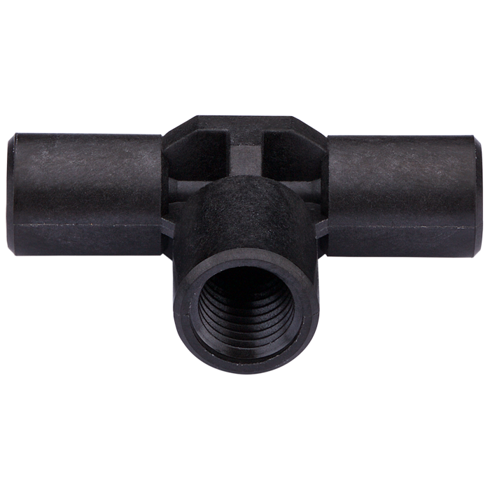 This carbon-PEEK, Endure™ brand adapter is used to connect three pieces of low pressure, 1/16th OD tubing with 1.0mm / 0.040 inch ID.