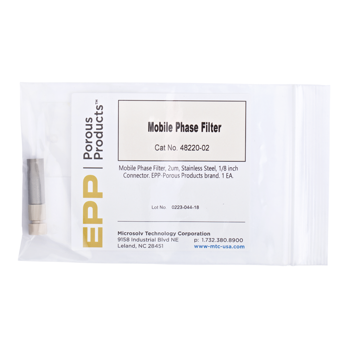 These 316L stainless steel filters with PEEK tubing connectors are manufactured to provide a very high filtering capacity and mobile phase solvent throughput. Passivated with a 30% nitric acid solution, the 2um porosity will filter out larger, undissolved particles from your mobile phases or solvents before they enter your HPLC pumps, columns and instrument reducing damage.