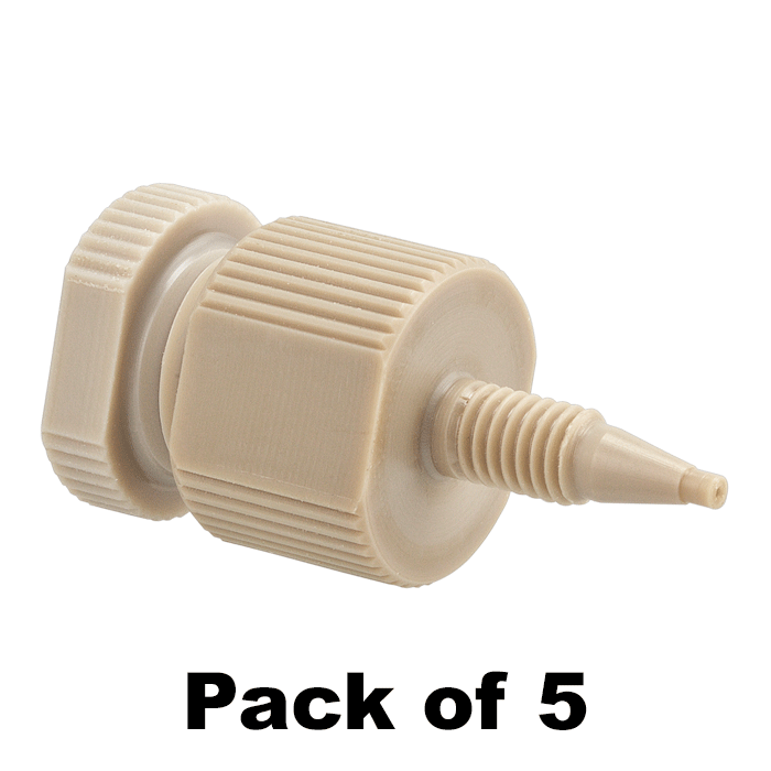 A pack of 25, 0.188 inch, PEEK encased titanium filters are supplied but any PEEK encased filter or porosity that is 1/4 inch OD and 1/16th inch thick should work. Click HERE for ordering information.