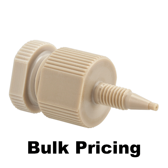 A pack of 25, 0.188 inch, PEEK encased titanium filters are supplied but any PEEK encased filter or porosity that is 1/4 inch OD and 1/16th inch thick should work. Click HERE for ordering information.
