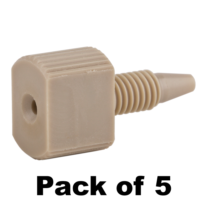 Tubing Connector Fittings, high pressure, one piece, 1/16 inch, PEEK, Natural, large Combihead with 10-32 screw threads. Finger or wrench tighten, ARE-Applied Research brand. 5/PK.