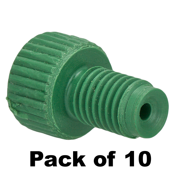Tubing Connector Nuts, low pressure, 1/16 inch, PEEK, Green with 1/4-28 screw threads, for use with flange free, polymeric tubing. ARE-Applied Research brand. 10/PK.