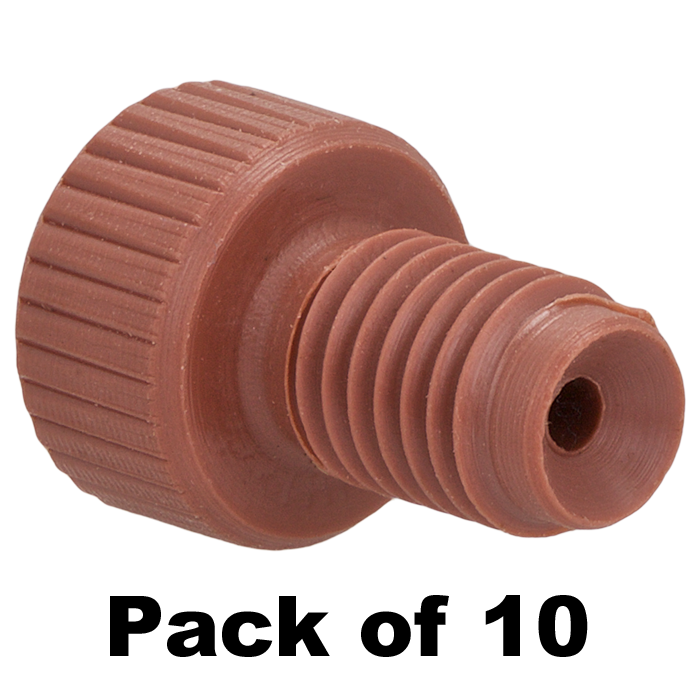 These tubing connector nuts are used to connect 1/16th inch (1.6 mm) OD polymeric tubing in the low pressures zones of HPLC systems and other low pressure, fluidic uses.