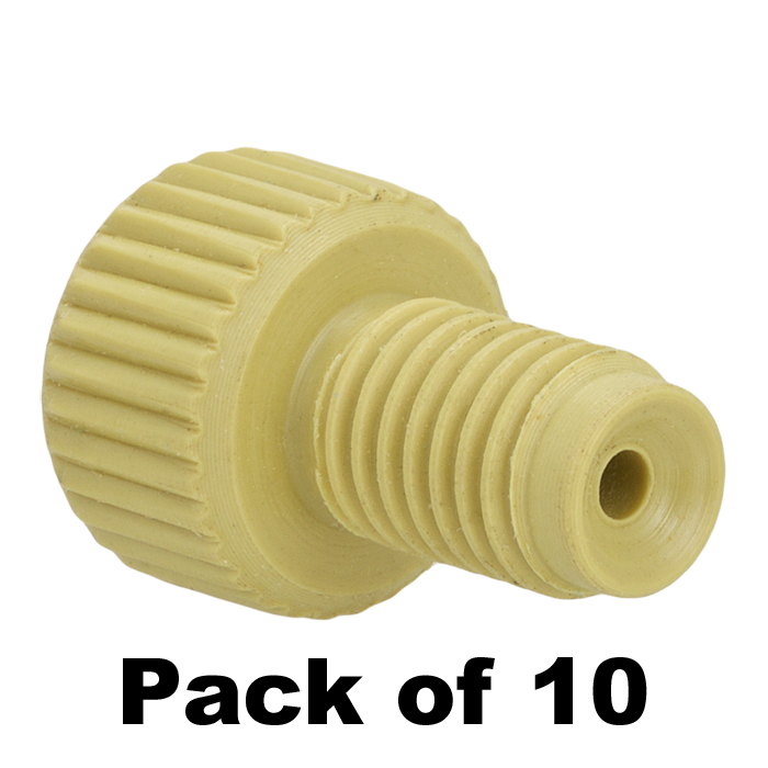 Tubing Connector Nuts, low pressure, 1/16 inch, PEEK, Yellow with 1/4-28 screw threads, for use with flange free, polymeric tubing. ARE-Applied Research brand. 10/PK.
