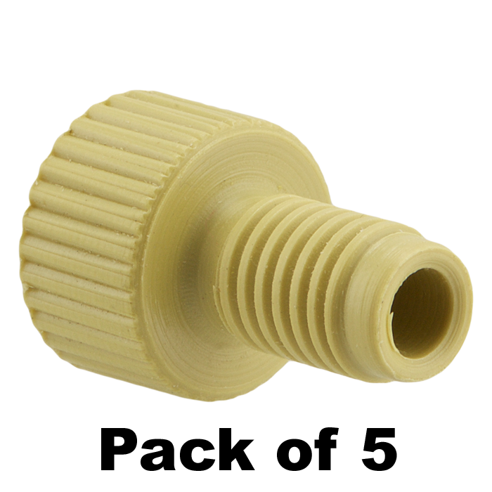 These tubing connector nuts are used to connect 1/8th inch (3.2 mm) OD polymeric tubing in the low pressures zones of HPLC systems and other low pressure, fluidic uses.
