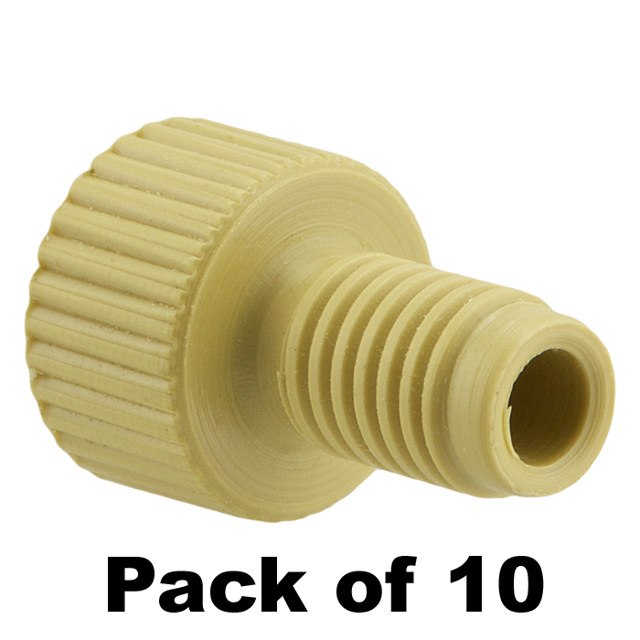 These tubing connector nuts are used to connect 1/8th inch (3.2 mm) OD polymeric tubing in the low pressures zones of HPLC systems and other low pressure, fluidic uses.