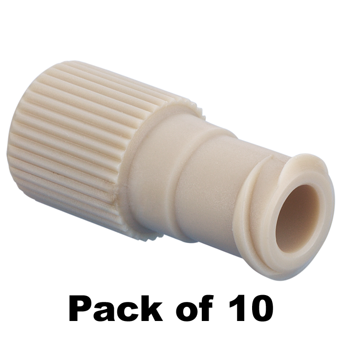 Adapter, for use with Luer Lock devices, 1/4-28 flat bottom female threaded adapter to male luer fitting. PEEK. ARE-Applied Research brand. 10/PK.